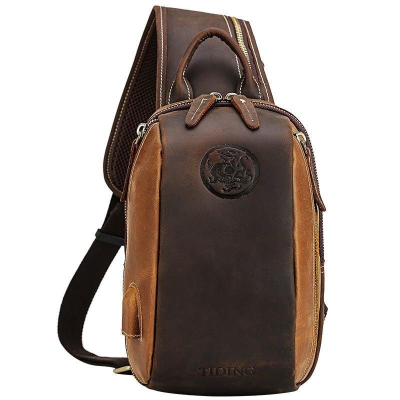 Pánská Kožená Crossbody Kabelka Přes Rameno Hnědá