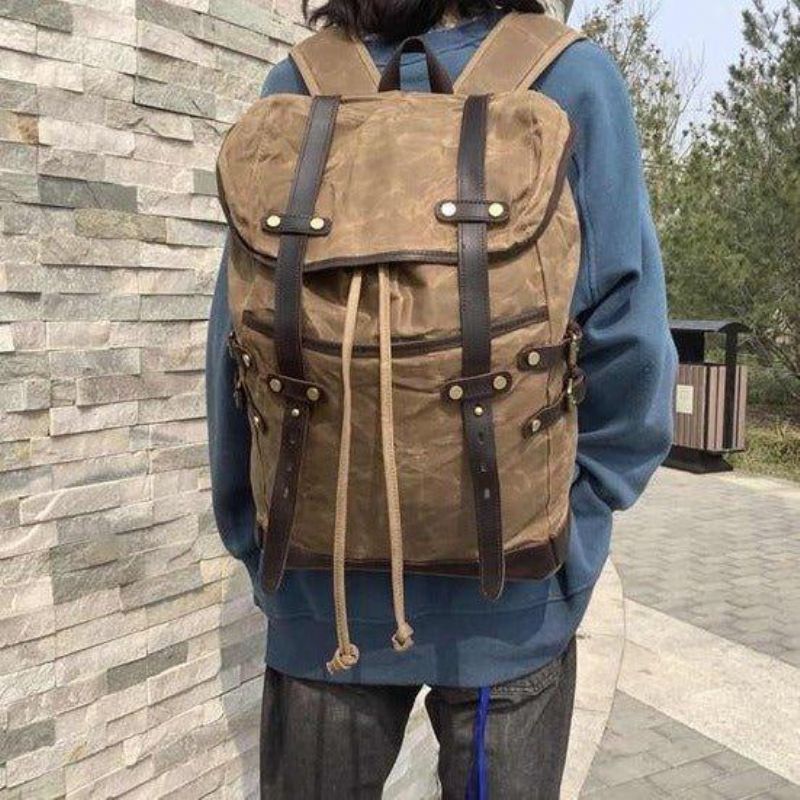 Pánský Vintage Voskovaný Plátěný Batoh Z Kůže