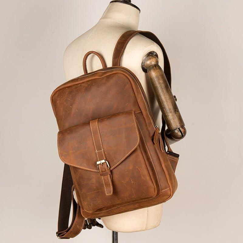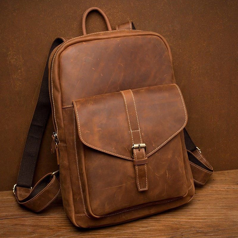 Tento Produkt Je Vyroben Z Bláznivé Koňské Kůže, Která Při Jemném Poškrábání Nehtem Představuje Vintage Vzhled S „Škrábanci“. Vintage Kožený Batoh Na Notebook S Hlavním Komponentem, Vnitřními A Bočními Kapsami Je Nejlepší Volbou Pro Práci, Cestování, Vysokou Školu A Každodenní Použití.